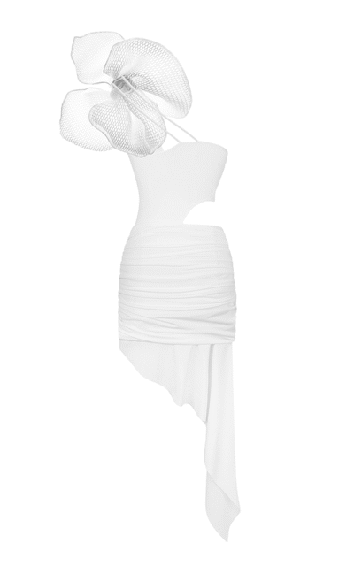 Oversized mesh bomber jacket adorned with big 3D flower decoration. This bomber jacket boasts a dramatic oversized silhouette. Crafted from beige peach mesh. The model wears size 36